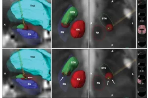 Fonte da imagem: Torres V, Del Giudice K, Roldán P, et al. Image-guided programming deep brain stimulation improves clinical outcomes in patients with Parkinson’s disease. npj Parkinson’s Disease. 2024;10(29). doi:10.1038/s41531-024-00639-9. Figura 1. Licença Creative Commons CC BY 4.0.
